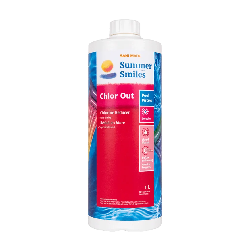 CHLOR OUT réduit rapidement le taux de chlore dans votre piscine afin de permettre aux baigneurs de profiter immédiatement de la piscine. CHLOR OUT ne changera pas les couleurs du vinyle, du ciment et des piscines en fibre de verre.