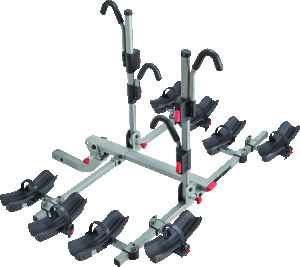 • Nouveaux crochets revêtus de caoutchouc • Couleurs différentes sur certaines petites pièces • Technologie PullPin™ qui élimine le besoin de recourir à une goupille de sécurité • Increased tilt angle • Peut transporter quatre vélos, peu importe le type de cadre, de suspension ou de format de roues • Compatible avec les fatbikes et les vélos équipés de garde-boue • Permet un chargement ou un déchargement rapide et facile des vélos grâce aux attaches à rochet • Plateaux bas pratiques • Se convertit pour quatre à deux vélos en quelques secondes • Se replie vers le haut lorsqu'inutilisé ou vers le bas pour faciliter l'accès au hayon • Pour attelages 2 po seulement • Antivol HitchLock inclus • Peut transporter des vélos d'un poids allant jusqu'à 45 lb chacun |